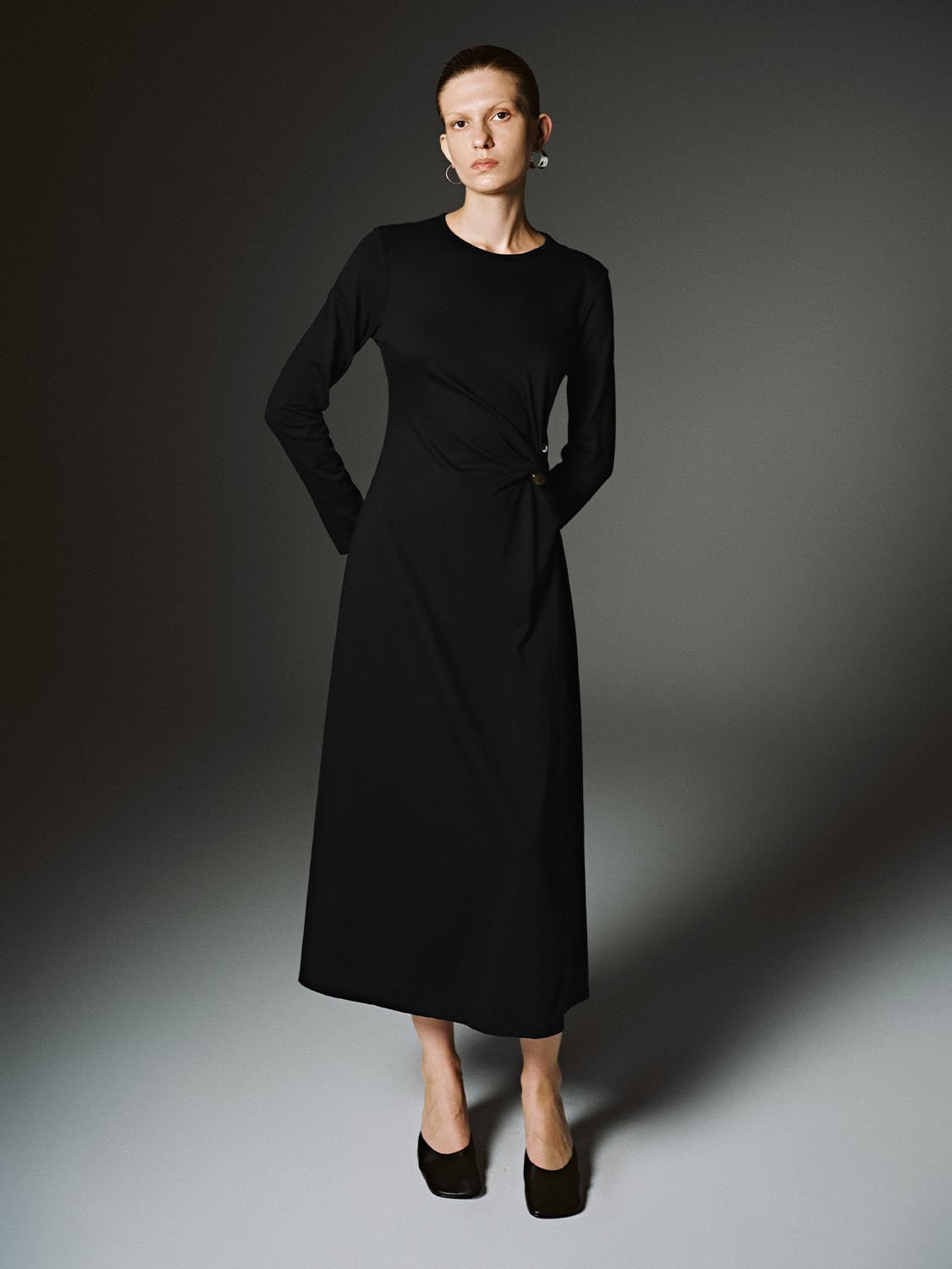 Drape Long Sleeve Midi Dresses