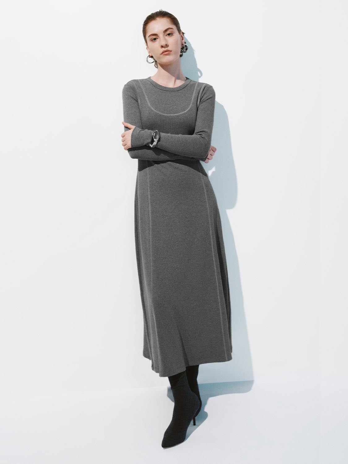 Long Sleeve A-Line Midi Dresses
